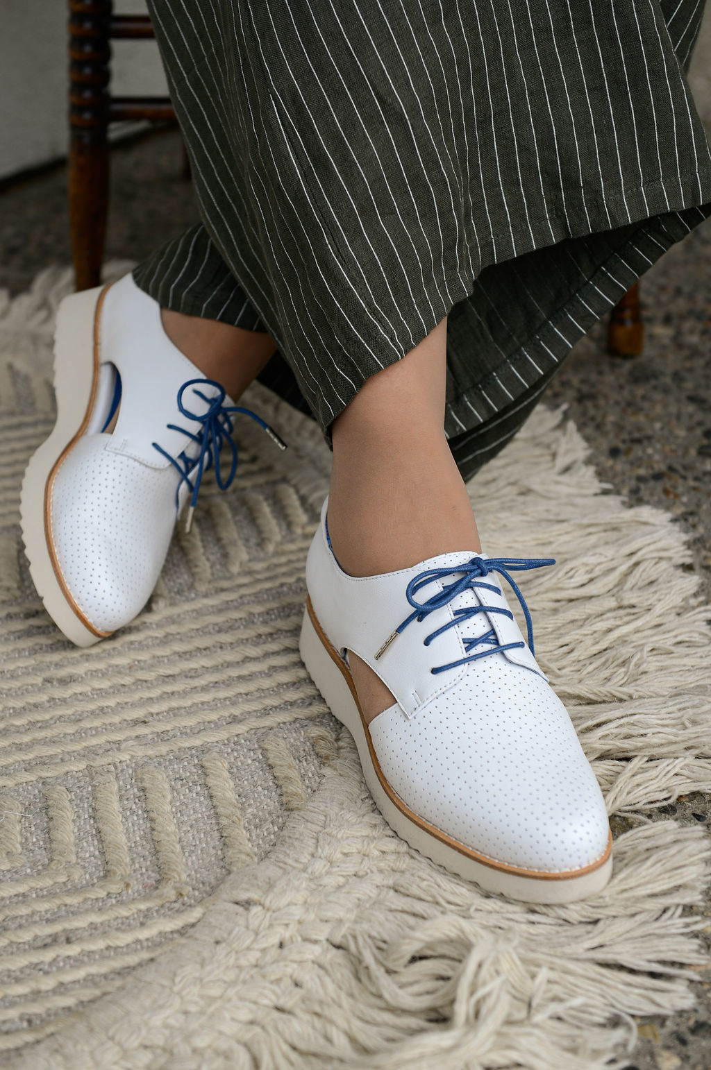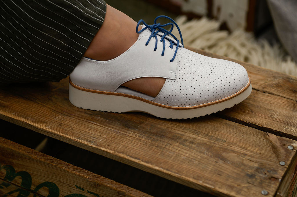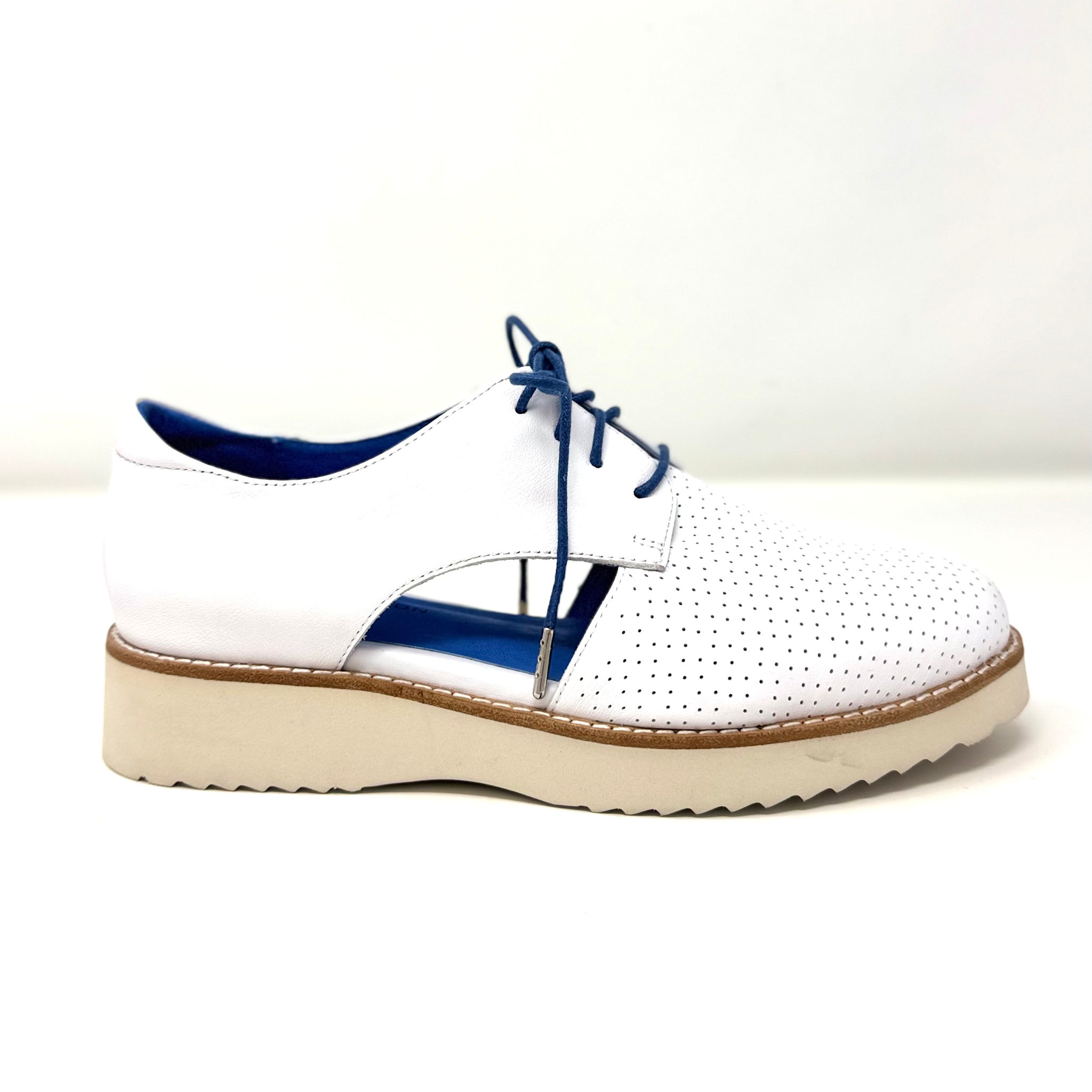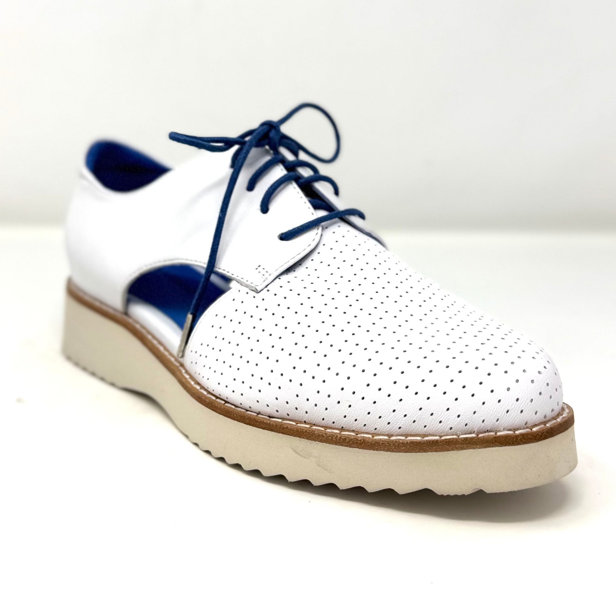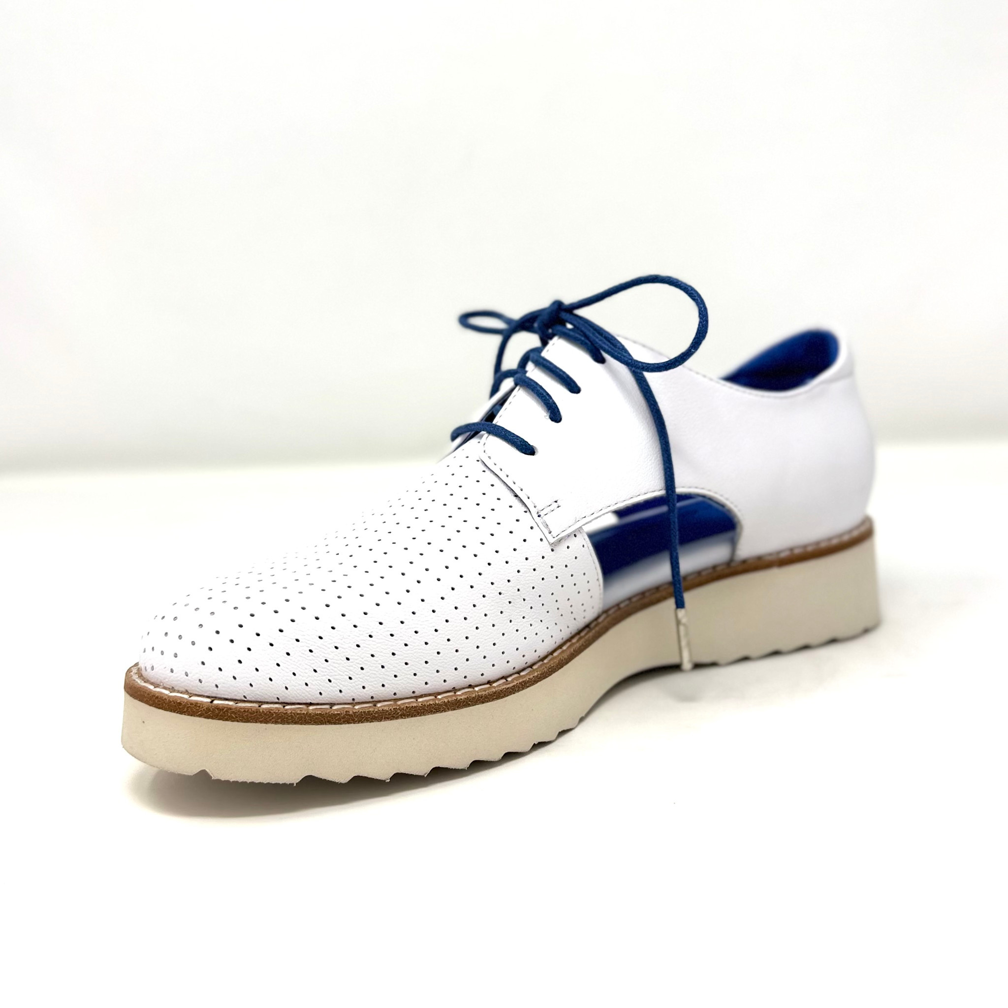 A perforated lace-up shoe with a clean, breathable design, featuring small cutout details across the upper that add texture and airflow.
