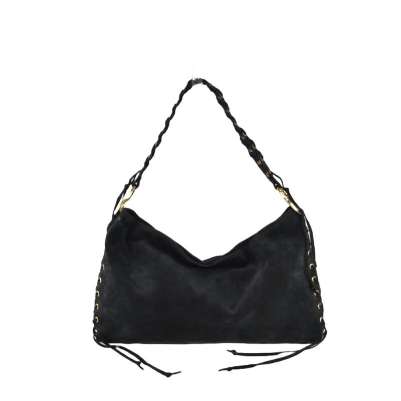 Create an accountThis gorgeous bag fits snugly under your arm for a comfortable over the should carry. A sturdy woven strap. Braiding down the side with suede tassels make this bag a little bit bohemian.