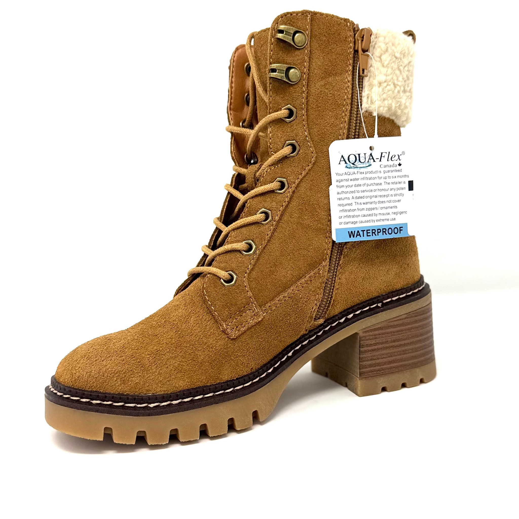 Create an accountA mid calf boot in waterproof suede. A lace up front with a side zipper for easy entry.