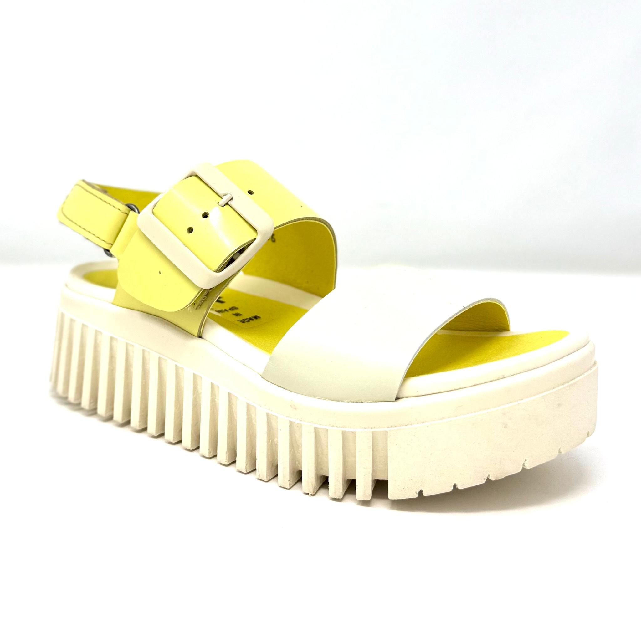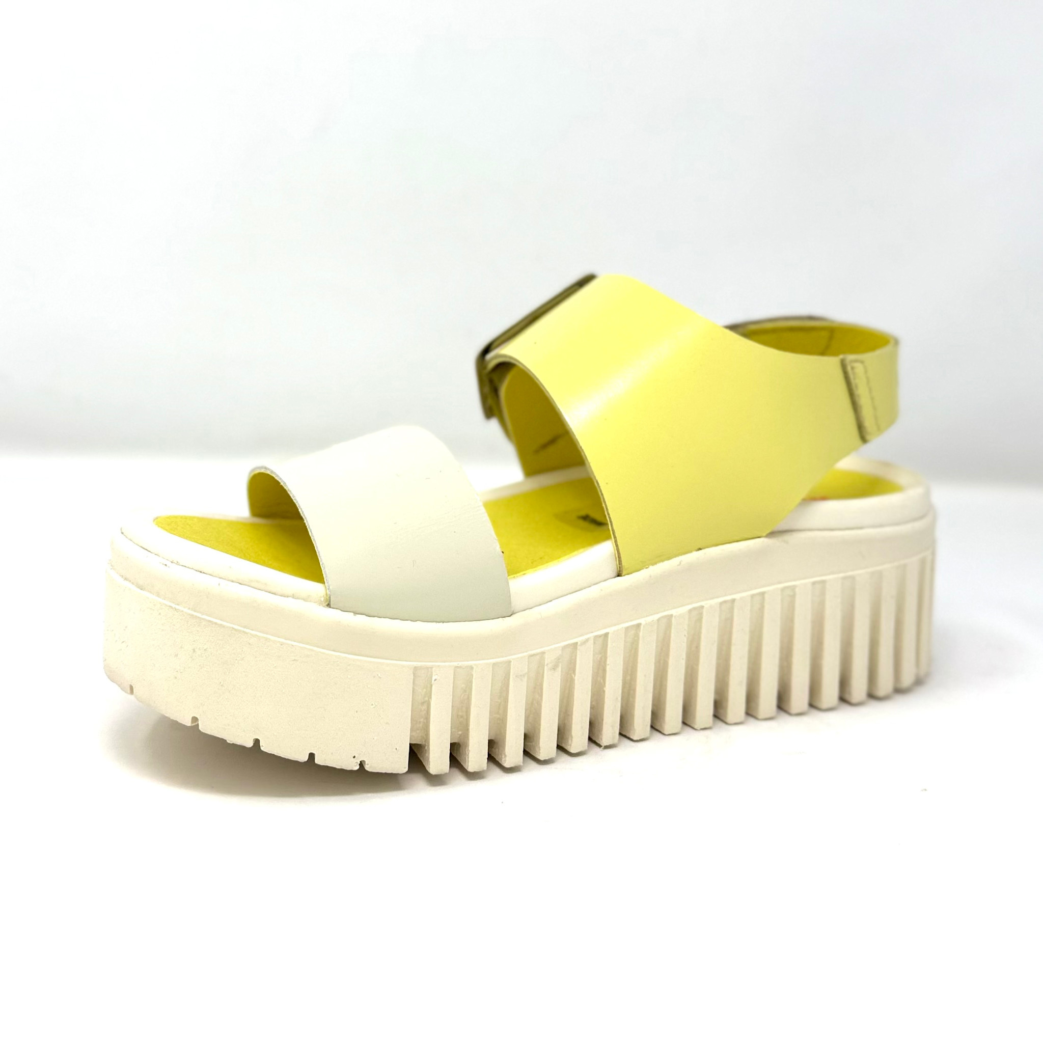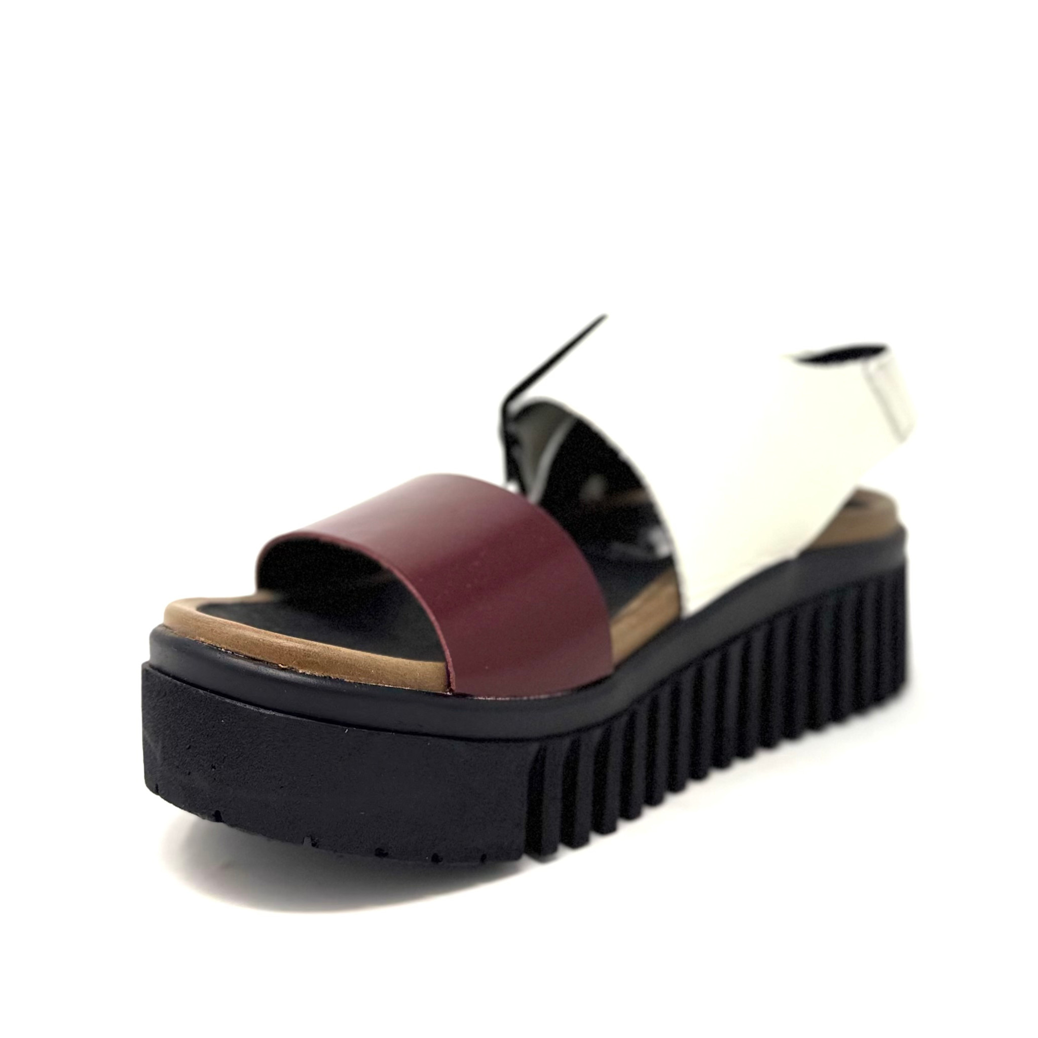 The straps come in two contrasting colors—one grounding neutral and one richer or brighter tone—creating visual depth without feeling busy. Below, a thick, substantial sole adds a chunky silhouette and a sense of durability, with a slightly cushioned footbed that suggests all-day comfort. The overall vibe is contemporary and fashion-forward, balancing structure and ease, like a sandal designed to be both a statement piece and a reliable everyday staple.