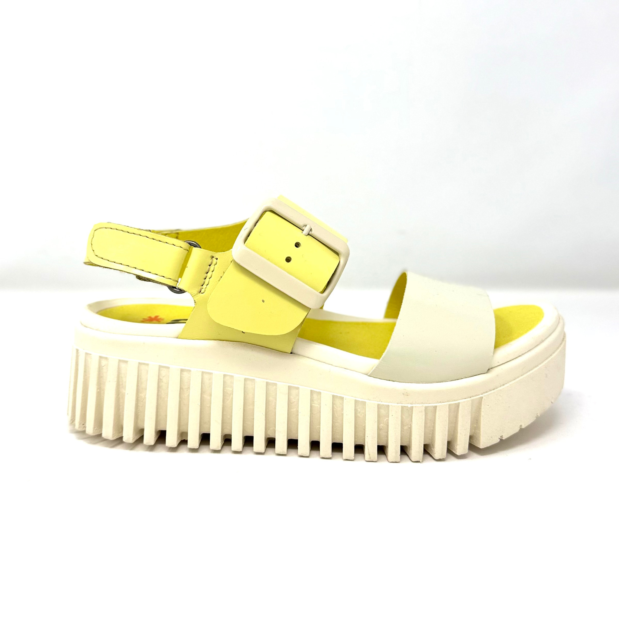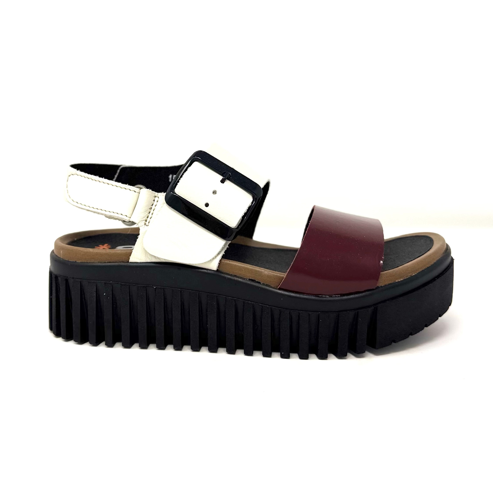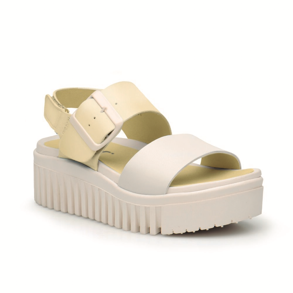 The straps come in two contrasting colors—one grounding neutral and one richer or brighter tone—creating visual depth without feeling busy. Below, a thick, substantial sole adds a chunky silhouette and a sense of durability, with a slightly cushioned footbed that suggests all-day comfort. The overall vibe is contemporary and fashion-forward, balancing structure and ease, like a sandal designed to be both a statement piece and a reliable everyday staple.