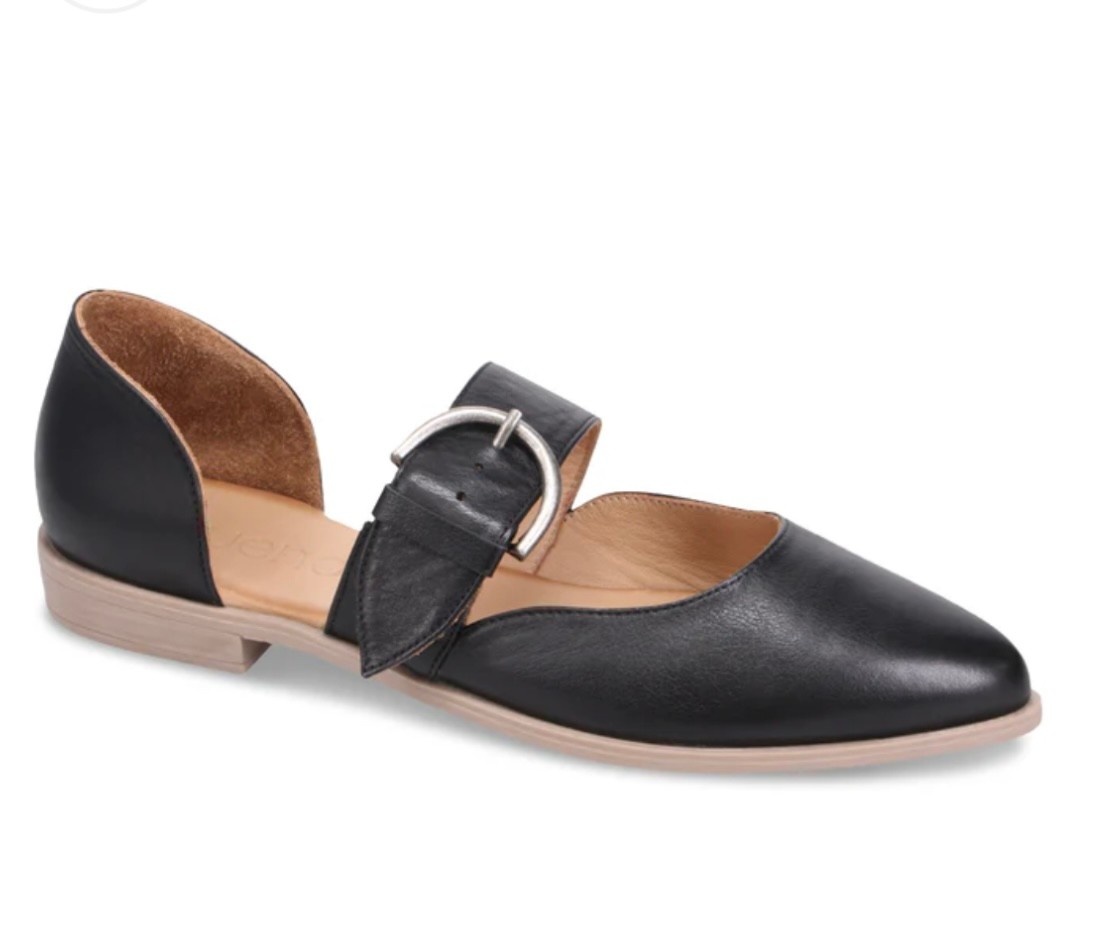 Create an accountThis flat is an open-side style, with a dressy strap that isn't just for show, it's also adjustable! Talk about a hard-worker.