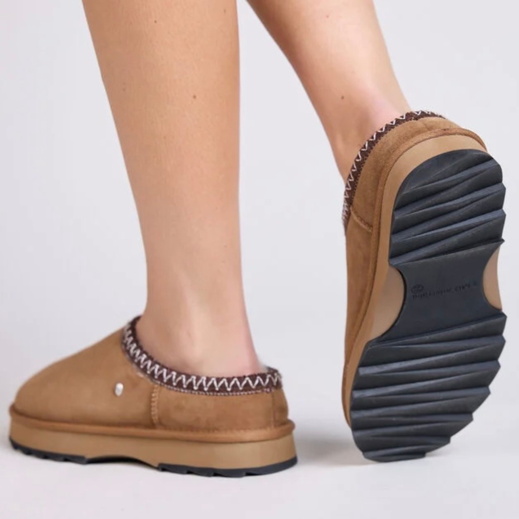 Relaxation, with a twist. This slipper combines plush sheepskin with a simple, slip-on design for all-day comfort and effortless style. The soft lining hugs your feet, while the flexible rubber sole lets you go from indoors to outdoors without a second thought. Whether you’re kicking back or running errands, this slipper is your new go-to for ultimate ease and comfort