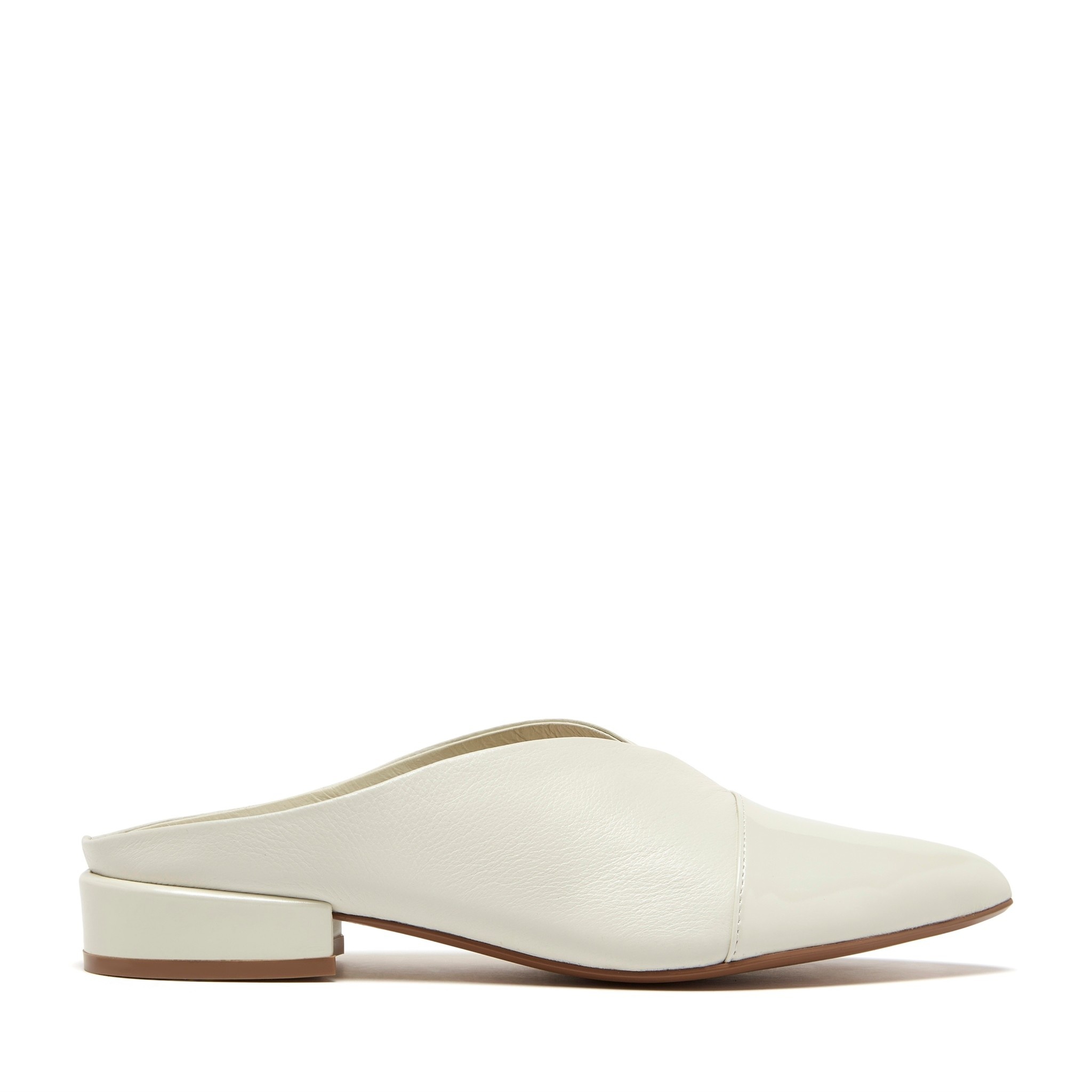 Create an accountThe shoe is backless, letting the heel sit open for an easy slip-on feel, while the pointed toe elongates the silhouette and keeps it sharp. Smooth leather wraps the upper in a sleek, uninterrupted line, emphasizing minimalism over ornament. The low square heel adds subtle structure and stability without sacrificing comfort, giving the design a refined, architectural look that feels polished yet effortless—perfect for both tailored outfits and relaxed, everyday wear.