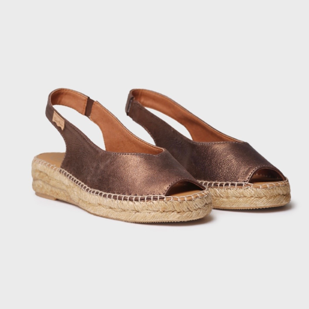 Create an accountERICA-AS is a flat espadrille for women in a peep toe style made of leather with a shiny finish. The jute wedge has a total height of 3.5 cm. The sole base is made of non-slip rubber. The insole is leather and padded to provide great comfort. The back strap has an inner elastic for a perfect fit to the foot. This model is made in solid colours. This design is hand-stitched in Spain. We use a technique called "polvore" to create a worn effect. The colour variations in this material are intentional. This style fits true to size, if you are between two sizes we recommend choosing the larger one.
