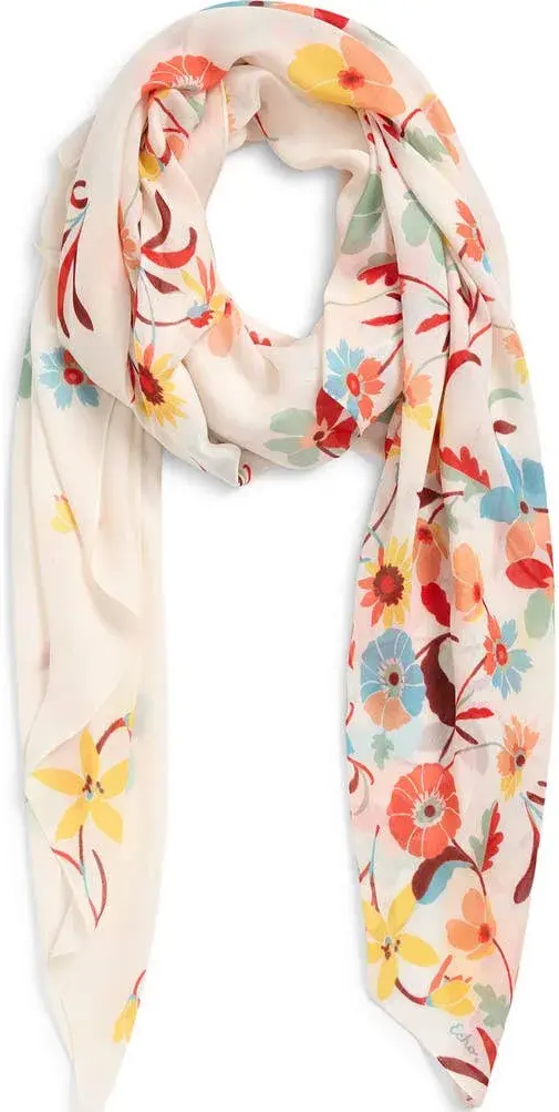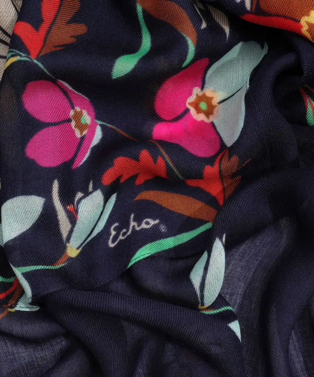 The Falling Flowers Wrap features an elegant ombré of cascading blooms, creating a soft, romantic effect.