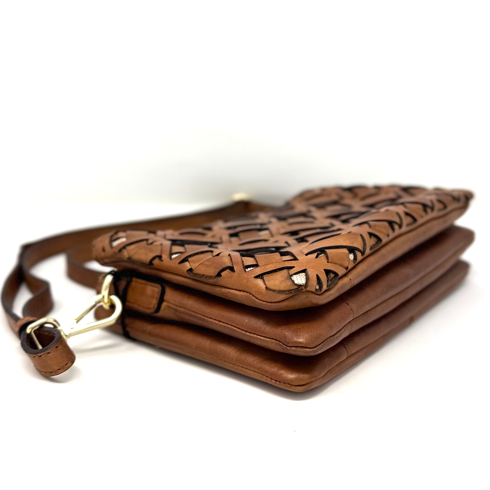 Crafted from braided Italian leather, this bag boasts a stylish textured design, perfect for elevating your everyday outfits or evenings out. This compact and refined bag features a triple internal compartment with side pockets for optimal organization, as well as a zippered back pocket ideal for quick access to your phone. Its adjustable shoulder strap allows for shoulder or crossbody wear, depending on your preference.