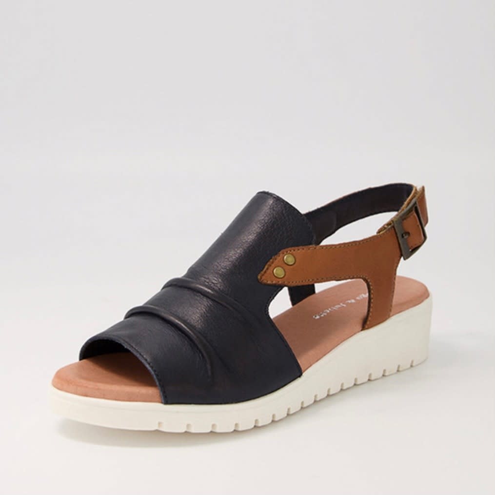 Create an accountA great little shoe for all occasions. Wear this 2 tone leather sandal all day long. Just the right amount of wedge heel for a dressier look while maintaining total comfort.