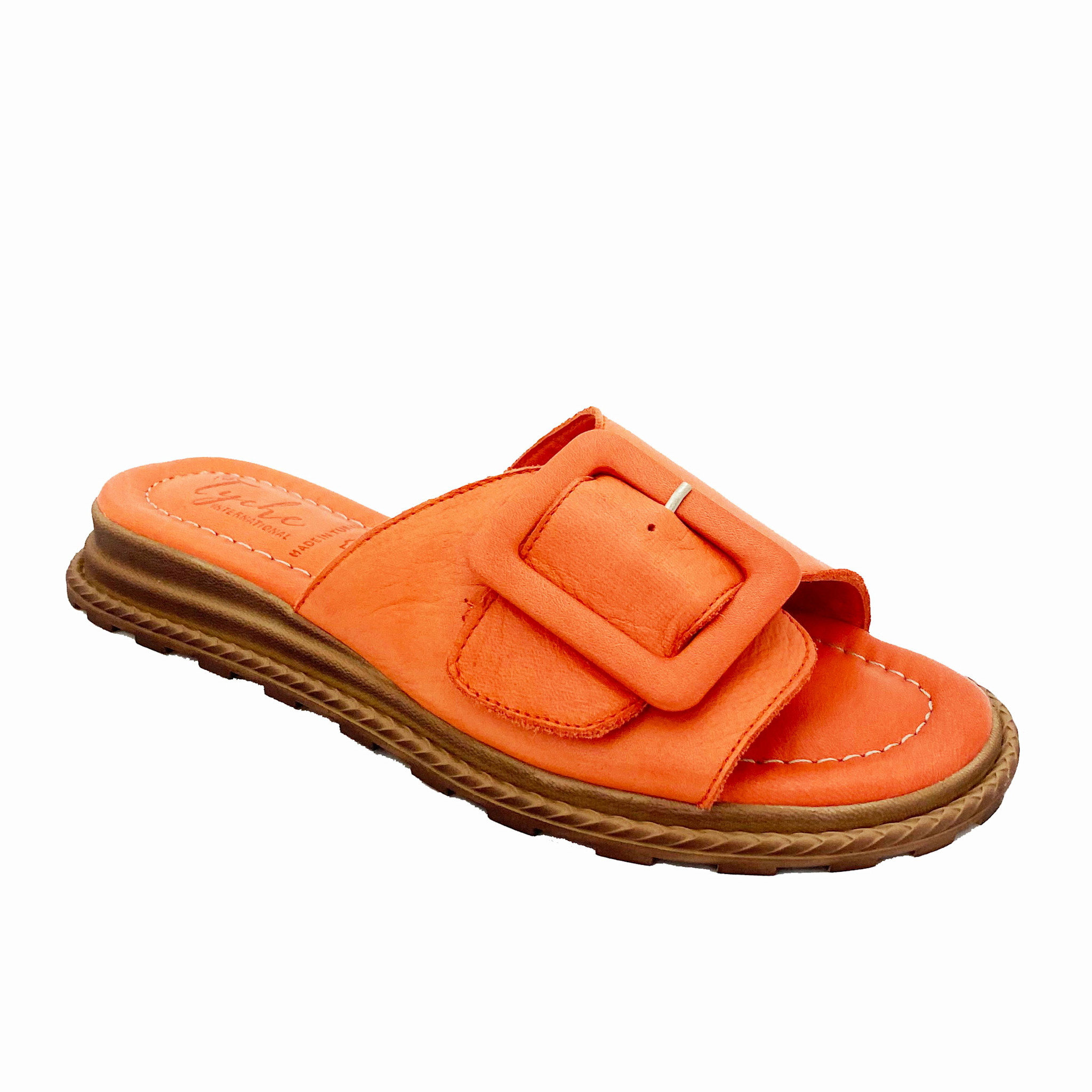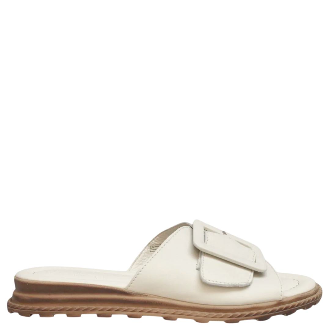 Create an accountA nicely cushioned flat slide with a soft leather buckle strap over the foot. Available in 4 great Summery colours.
