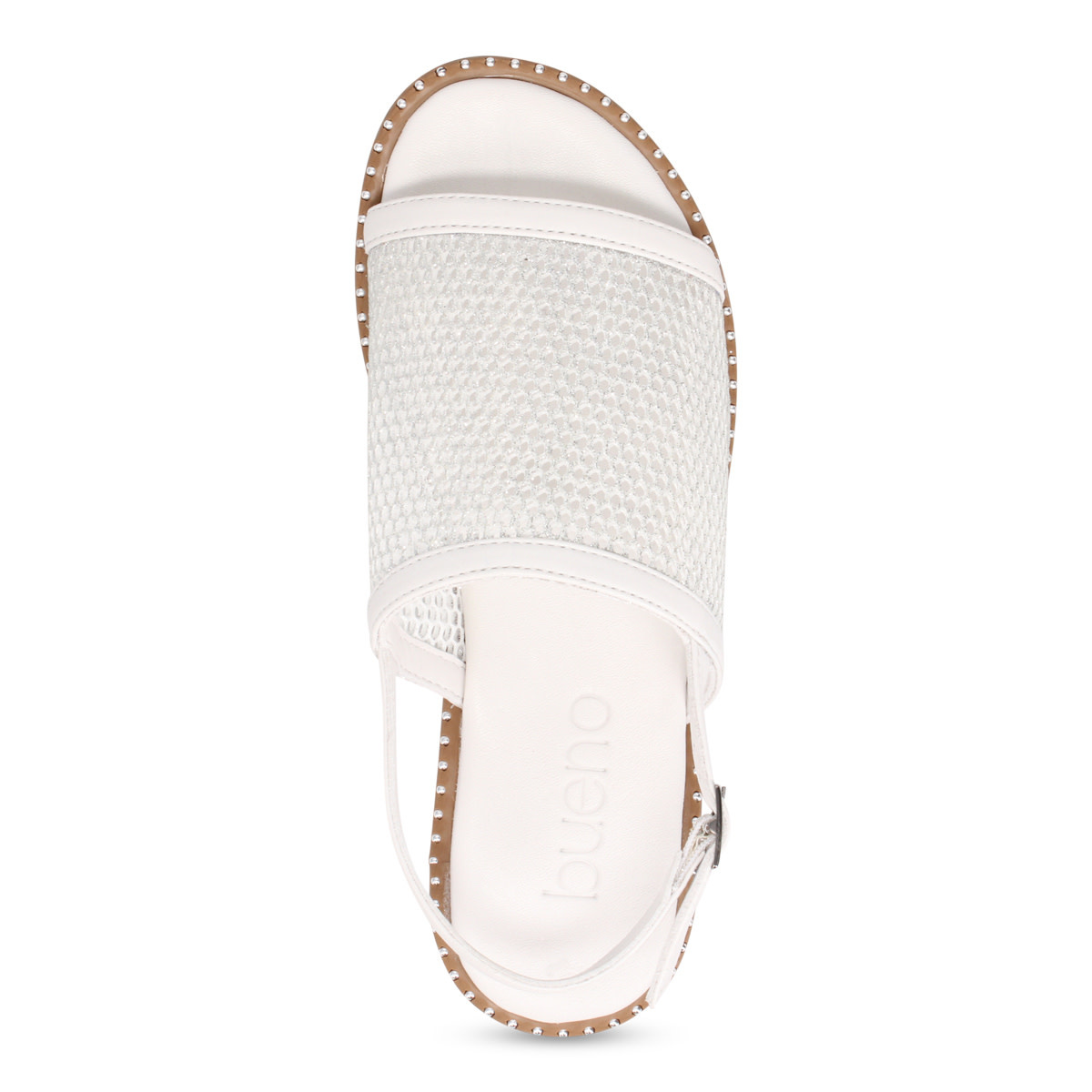 At the back, a slim slingback strap curves around the heel, holding the foot securely while keeping the design airy and open. The flat sole is thin and flexible, emphasizing comfort and simplicity. Overall, the sandal feels effortless and contemporary—delicate yet practical, perfect for warm weather and relaxed, polished styling.