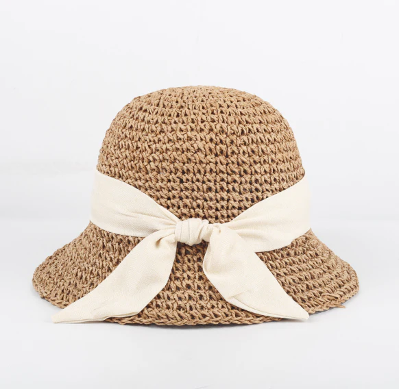 Create an accountThis adorable crochet straw hat has a fabric bow accent. The brim measures 3.5 inches. Available in Ivory and neutral.