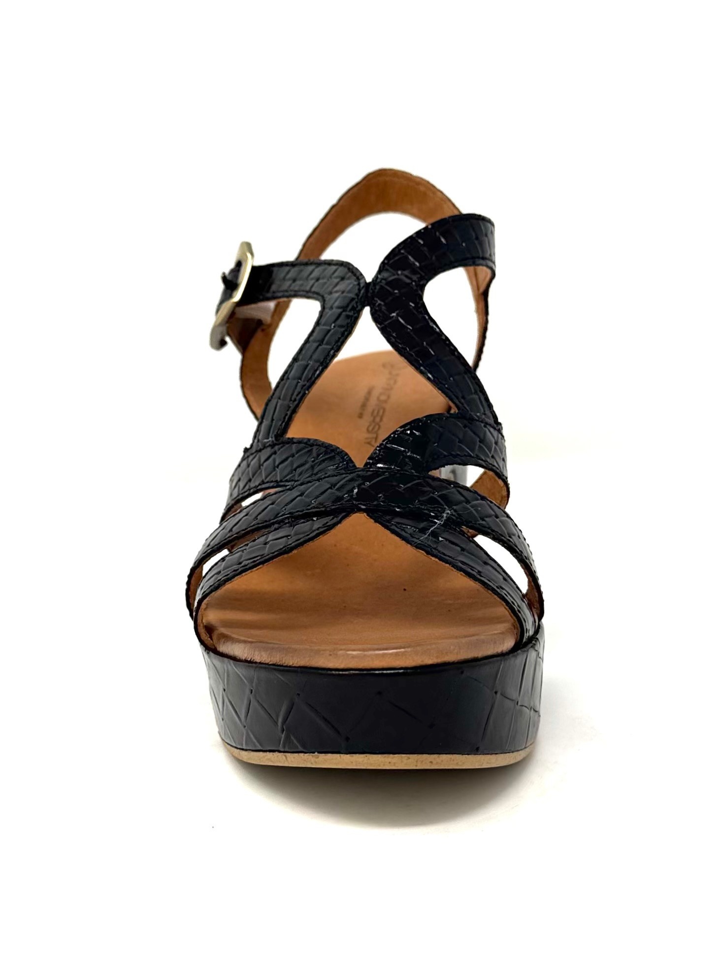 A substantial platform under the forefoot pairs with a tall, blocky heel, creating dramatic height while keeping the proportions balanced and walkable. The upper features thick, confident straps that nod to vintage ’70s styling, hugging the foot in a structured, almost sculptural way. Clean lines and solid construction give it that throwback, disco-era energy, while the chunky sole grounds the look with modern edge. It’s the kind of sandal that instantly elevates an outfit and feels unapologetically fun.