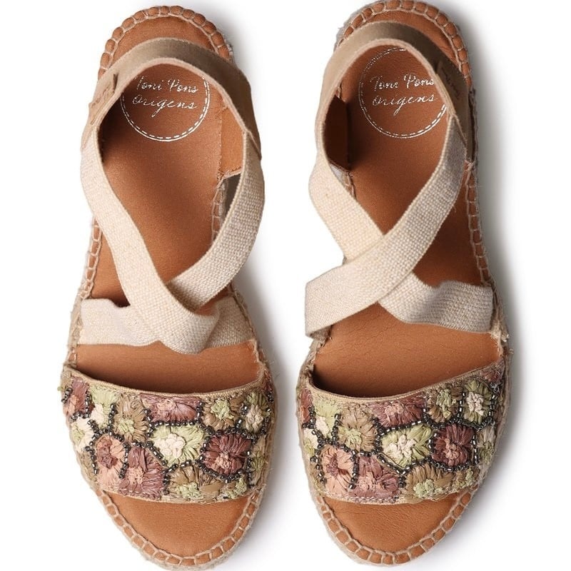 Create an accountThe inner insole is lined with breathable fabric, which makes it very comfortable. This design is hand-stitched in Spain. The elastic cross straps provide good support for the foot. The heel is in split leather.