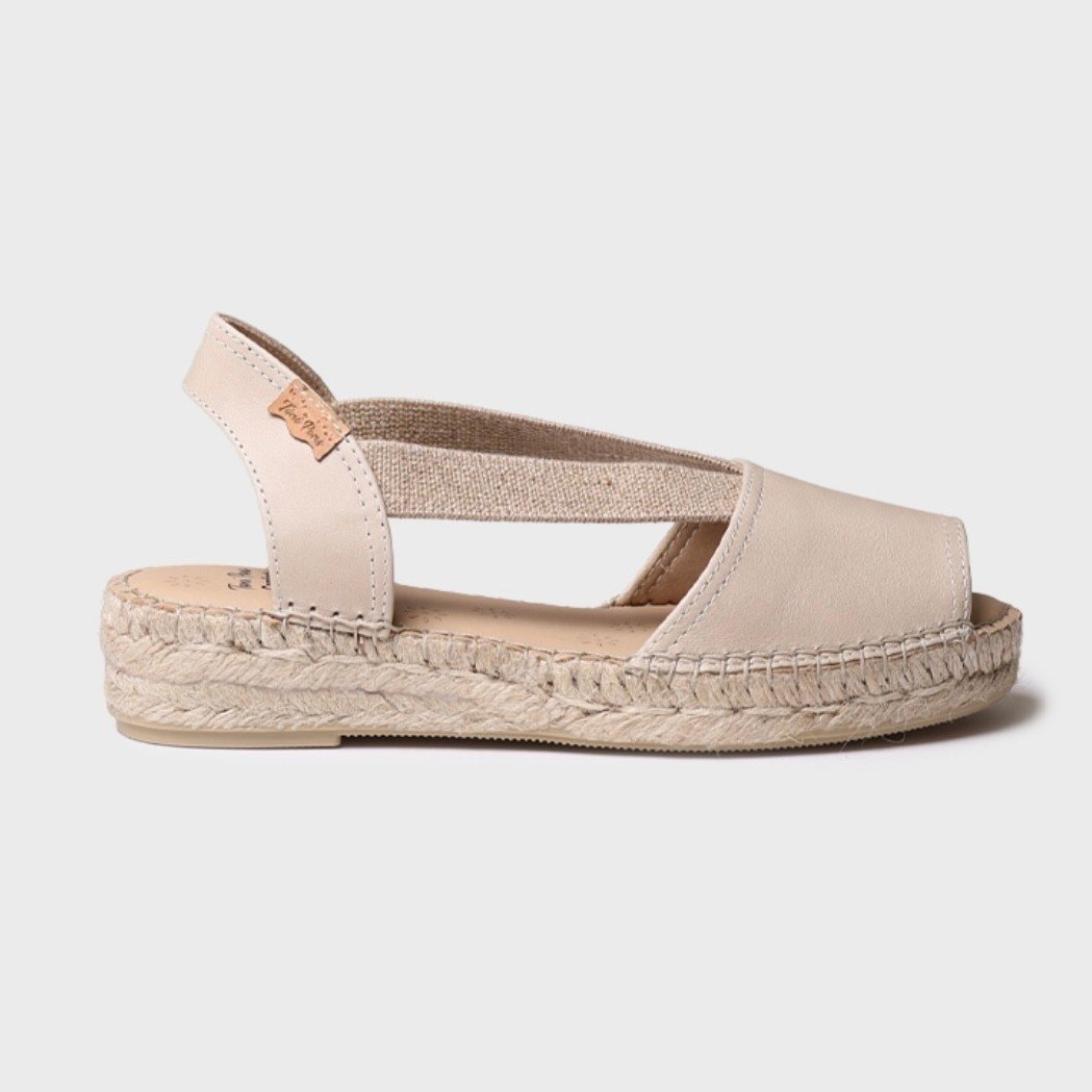 Create an accountTala espadrille features an open toe and heel design. The jute wedge has a height of 3.5 cm. The sole base is made of non-slip rubber. It has two side elastic straps that provide optimal support for the foot. The padded insole is lined with leather for greater comfort. This espadrille is hand-stitched in Spain. This style fits true to size, if you are between two sizes we recommend choosing the smaller one.