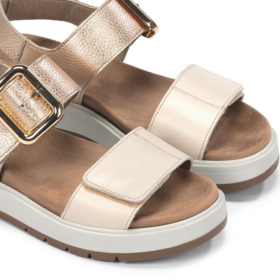 Create an accountA fashionable sandal that is made for comfort and hard-to-fit feet. Adjustable velcro straps for the perfect fit. a removable footbed to accommodate orthotics. Available in 2 neutral shades. Made in Spain.