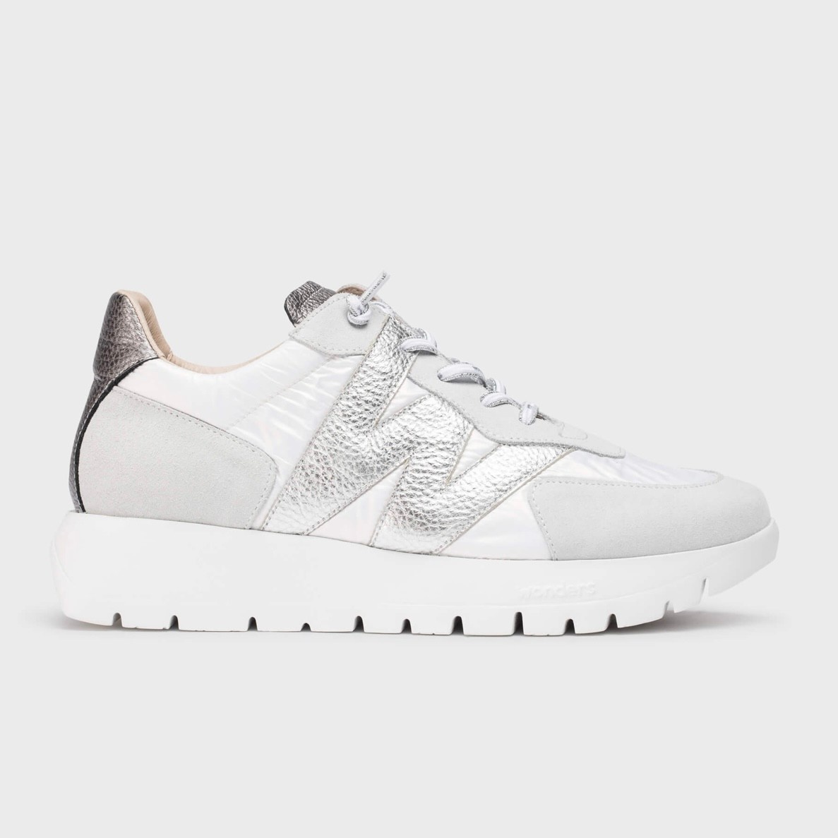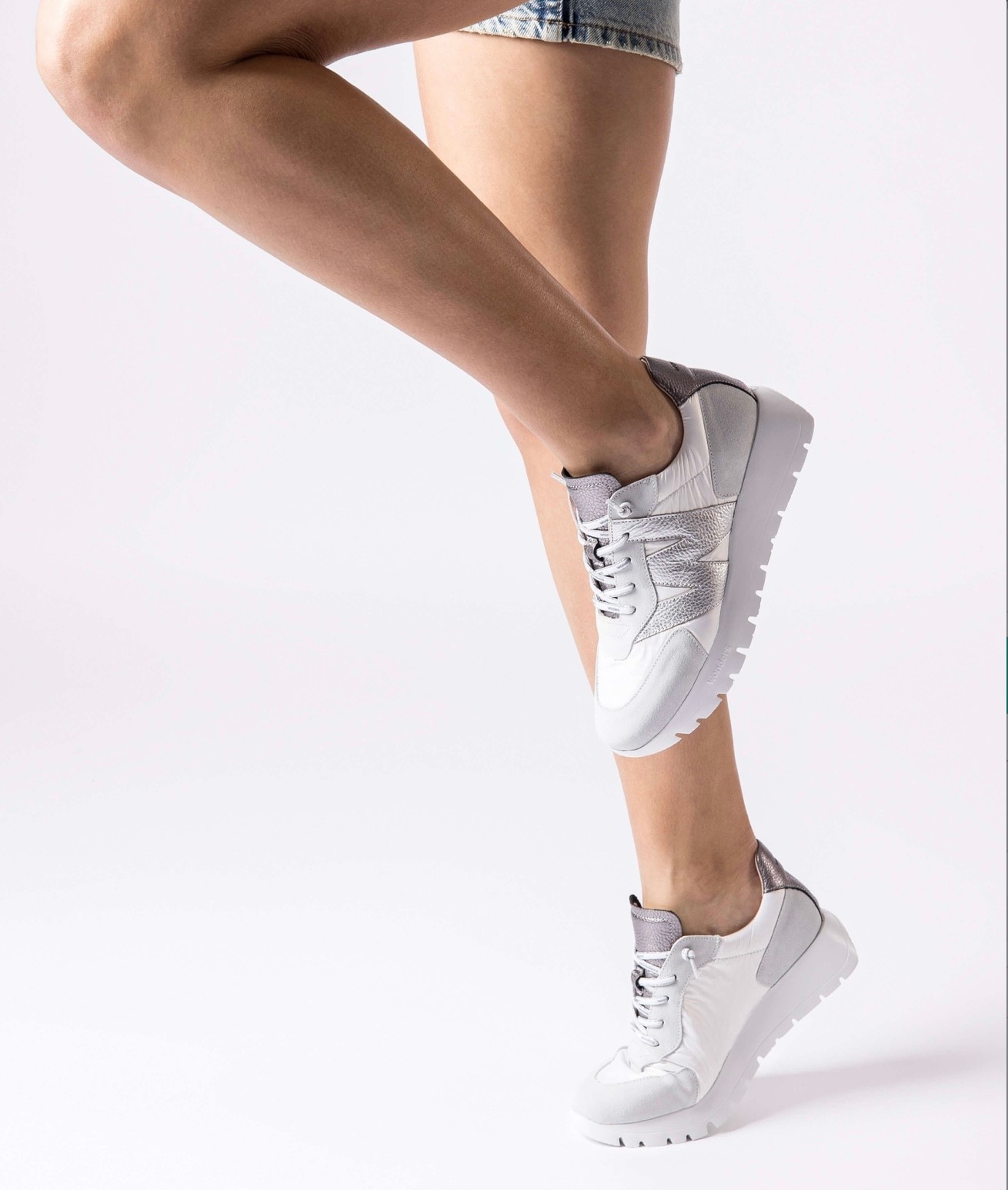 Create an accountWonders sneakers are the type of footwear that will never go out of fashion. The sneakers from the Spanish brand Wonders are well-known and popular sneakers. The upper is made of natural grain leather and suede and nylon fabric in silver and gold. Laced model - tied with elastic, rubber laces. The toe of the shoe has a round shape, which translates into the comfort of the toes.