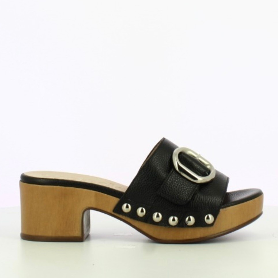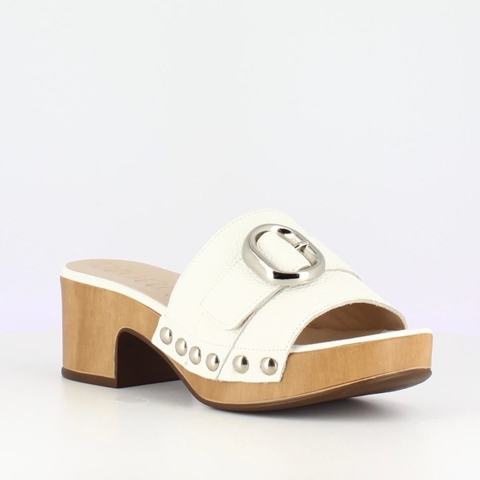 Create an accountDEMI by WONDERS a women's platform shoe that balances style and comfort. Designed for easy slide on wear, featuring a sleek leather band adorned with silver studs along the sole and finished with a bold, round buckle for a touch of modern sophistication. This heel is designed with a MemoryGel insole for cushioned comfort. The platform sole, developed using WondersFly™ technology ensures incredible lightness, making this heel both fashionable and easy to wear. The perfect combination of comfort and modern design, DEMI D-8852-P offers a stylish lift to your summer wardrobe.